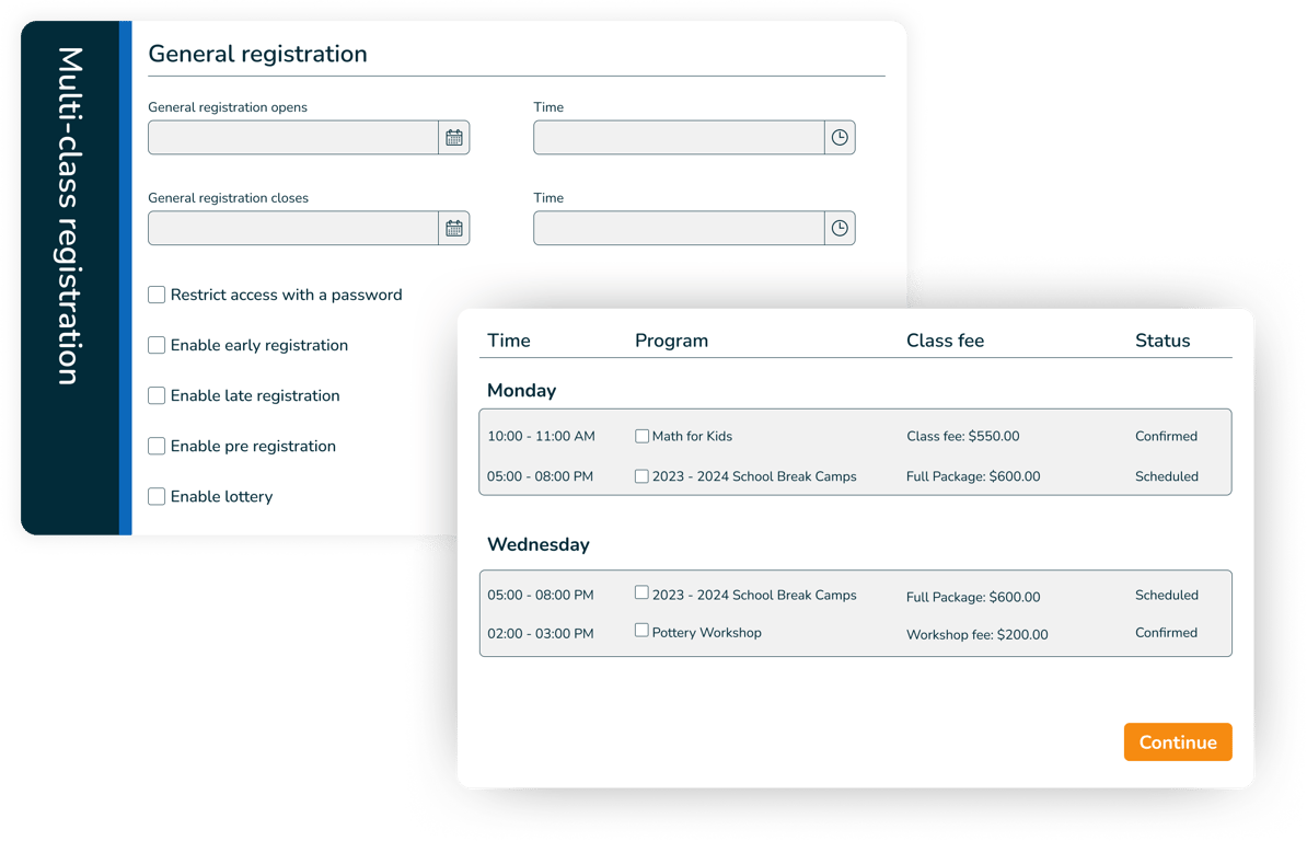Provide parents with an easy-to-use registration and payment system. parents browse class schedules online and enroll from the comfort of their homes or on the go. Offer your all the flexible payment options they need including automatic billing and payment plans.